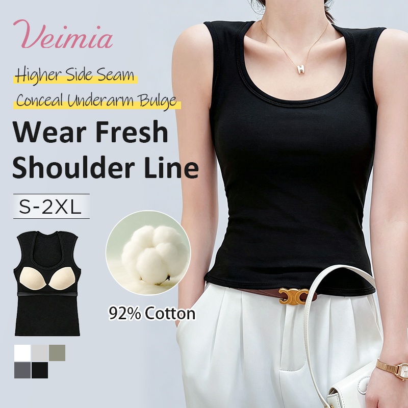 VEIMIA Stylish Tank Top Higher Side Seam & Deep U Neck With Wide Shoulder Straps